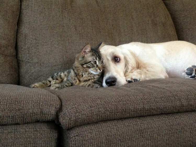Якщо кіт і собака живуть в одному будинку, ділити їм нічого. У них загальний диван, загальні іграшки, загальна миска, загальні коліна господарів. Всім вистачить ласки і уваги. Але коли господарів немає вдома, удвох веселіше. І ось докази того, що коти і собаки можуть бути кращими друзями – адже на кого ще можна покластися, якщо не на пухнастого друга.