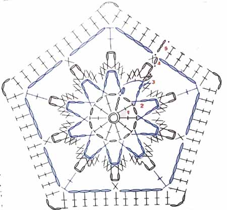 Набираємо на кожну спицю по три петлі, в кожному другому ряду робимо прибавки на початку і в кінці рапорту.