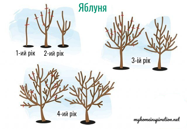 - видалити “вилки”, що ростуть вгору, і гілки, що труться одна об одну;