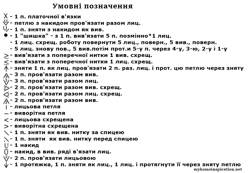 Як читати схеми в’язання спицями умовні позначення для початківців