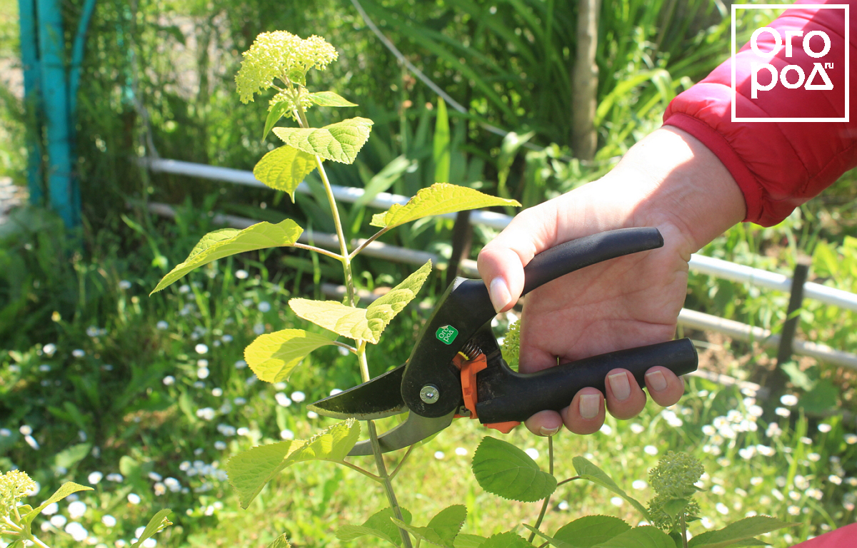 Якщо на пагонах гортензії вже утворилися бутони, то верхівку із суцвіттям потрібно обрізати.