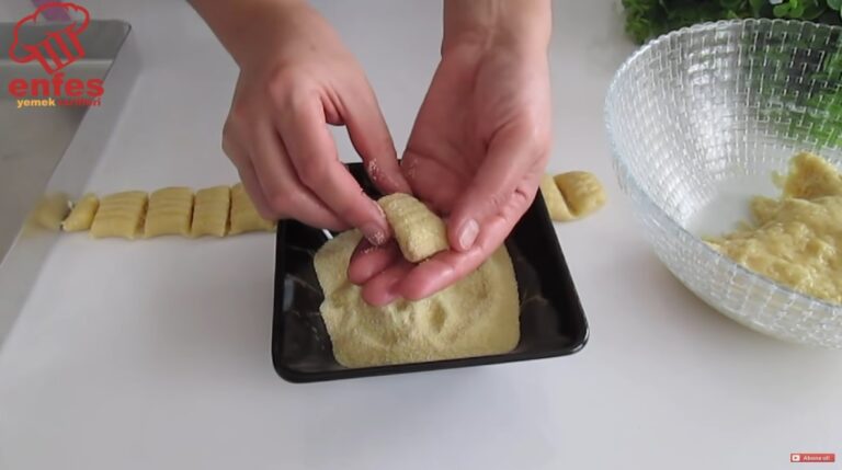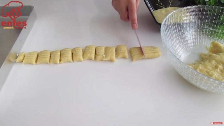 Відщипніть шматочок тіста, сформуйте тонкий валик і зробіть візерунок виделкою.