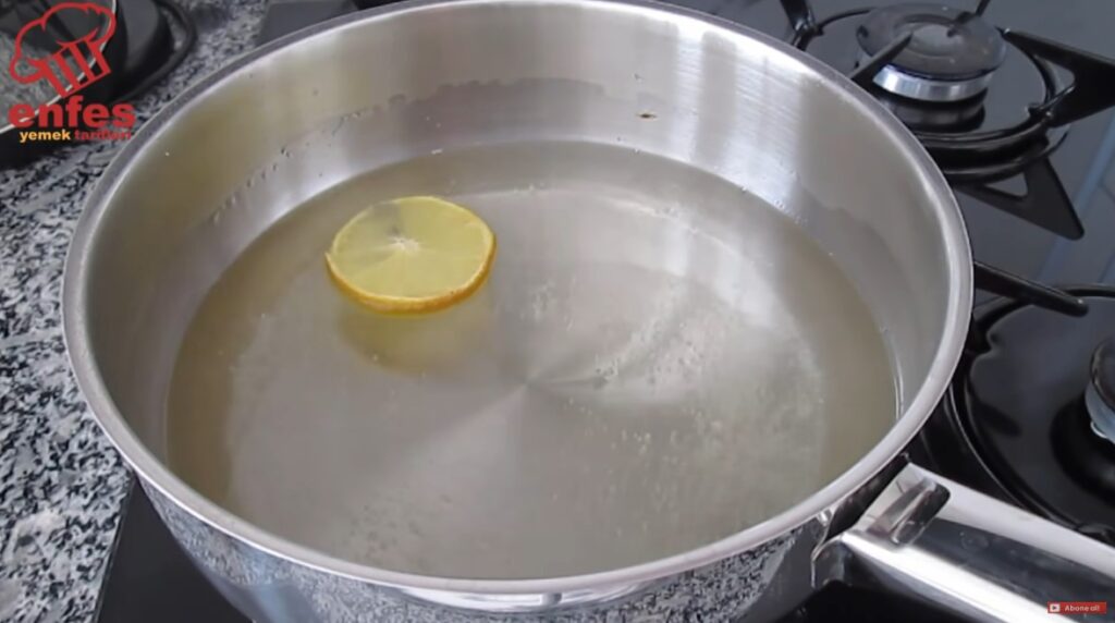 У невеликій каструлі змішайте цукор, воду та лимон. Доведіть до кипіння, варіть 1 хвилину, зніміть із вогню й залиште охолоджуватись.