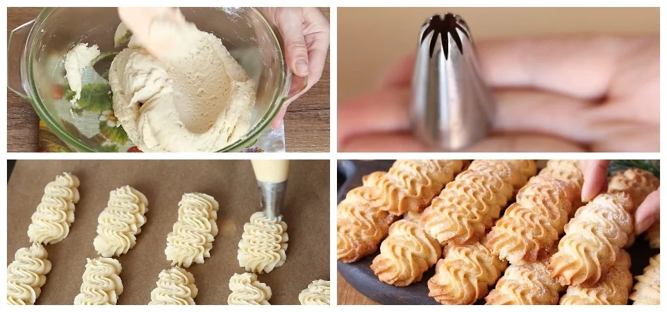Окрім продуктів вам знадобиться духовка, розігріта до 180° і це важливо, бо в іншому випадку печиво втратить свій малюнок. Крім того, вам потрібно деко, застелене пергаментом та кулінарний пакет з фігурною насадкою зірочка.