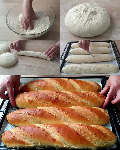 Після підйому злегка обімніть тісто, поділіть на частини та сформуйте батони або маленькі французькі булочки.