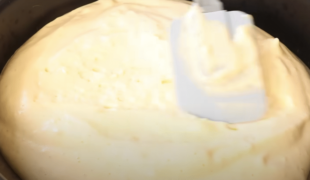 Додайте порошок ванільного пудингу, дайте суміші ще трохи закипіти, щоб пудинг загуснув, постійно помішуючи. Якщо утворюються грудочки – трохи розчавіть їх.