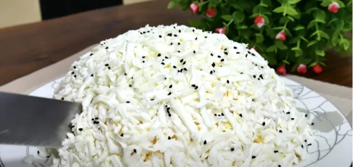 Дуже смачний салат “Сніг” із простих продуктів на свята – Новий рік та Різдво