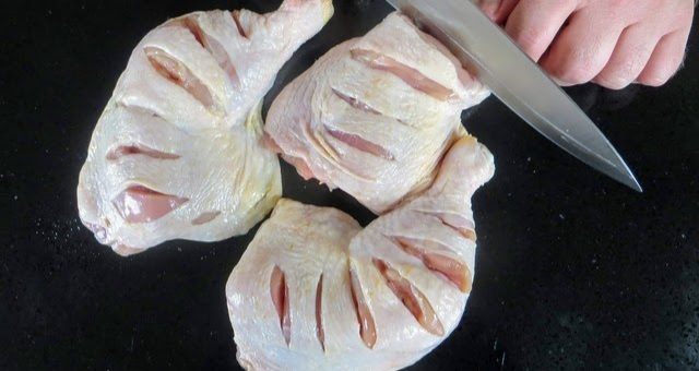 Необхідні продукти: три курячих стегенця дві цибулі 5-10 г хмелі-сунелі (можете використовувати будь-які спеції) 20 г винного оцту дрібка цукру сіль деревне вугілля тріска для копчення Приготування: Замість стегенець можете використовувати будь-яке м’ясо. На...
