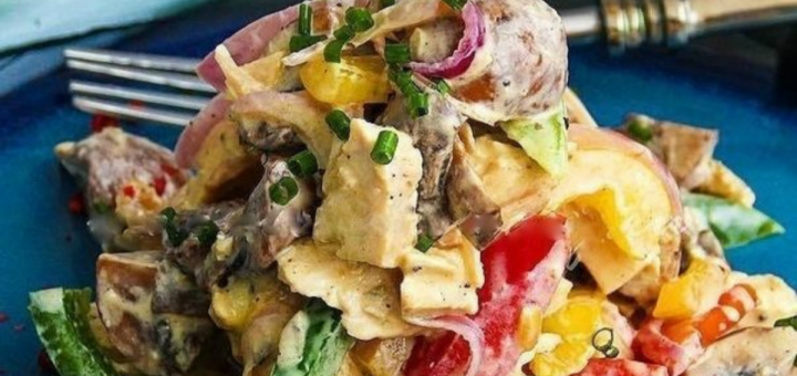 Інгредієнти: на 6-8 осіб Курка-філе грудки 400 г Шампіньйони – (або інші гриби) 400 г Болгарський перець – 300 г (Два великих перців) Червона цибуля – 1 шт. Натуральний йогурт – приблизно 200 мл....