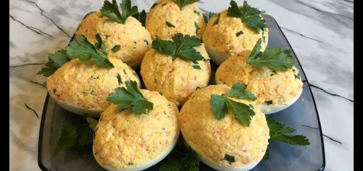 Яйця фаршировані крабовими паличками: дуже смачна, проста і швидка закуска